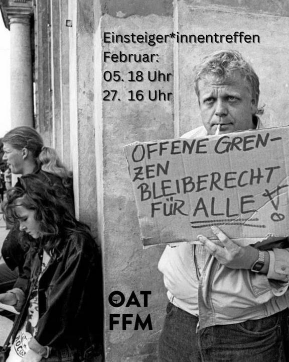 Wir sind das offene antifaschistische Treffen Frankfurt. Wir wollen einen Raum für alle Menschen bieten, die sich antifaschistisch engagieren und organisieren wollen, um der zunehmenden Faschisierung der sogenannten "Mitte der Gesellschaft", neonazistischen Ideologien und den Verhältnissen, die diese hervorbringen, gemeinsam entgegenzutreten. Wir wollen dem allgemeinen Gefühl der Ohnmacht und Vereinzelung eine Perspektive der kollektiven Selbstermächtigung entgegensetzen! Deshalb wollen wir offen sein für eure Ideen wie man linke Politik emanzipatorisch, solidarisch und zugänglich gestalten kann - sei dies in Form von Demos, Vorträgen, Workshops oder anderen kreativen Aktionsformen. Das OAT bietet die Möglichkeit, sich zu vernetzen, selbst aktiv zu werden und gemeinsam mit anderen über emanzipatorische Politik zu sprechen. Auf unserem Treffen ist kein Platz für Sexismus, Antisemitismus, Rassismus, Homo- und Transfeindlichkeit, Chauvinismus und andere menschenfeindliche Ideologien, damit sich alle Menschen bei uns wohlfühlen können.