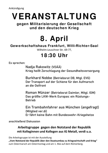 zum Ostermarsch am Ostermontag und am 1. Mai auf dem Römerberg.